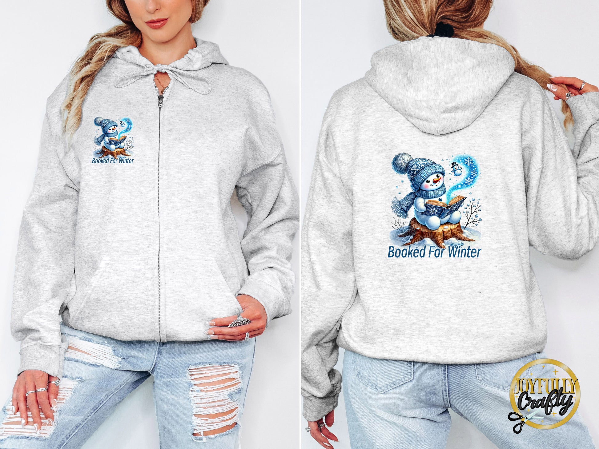 Booked For Winter Blue Snowman Adult Zip Up Hoodie Pocket Design
