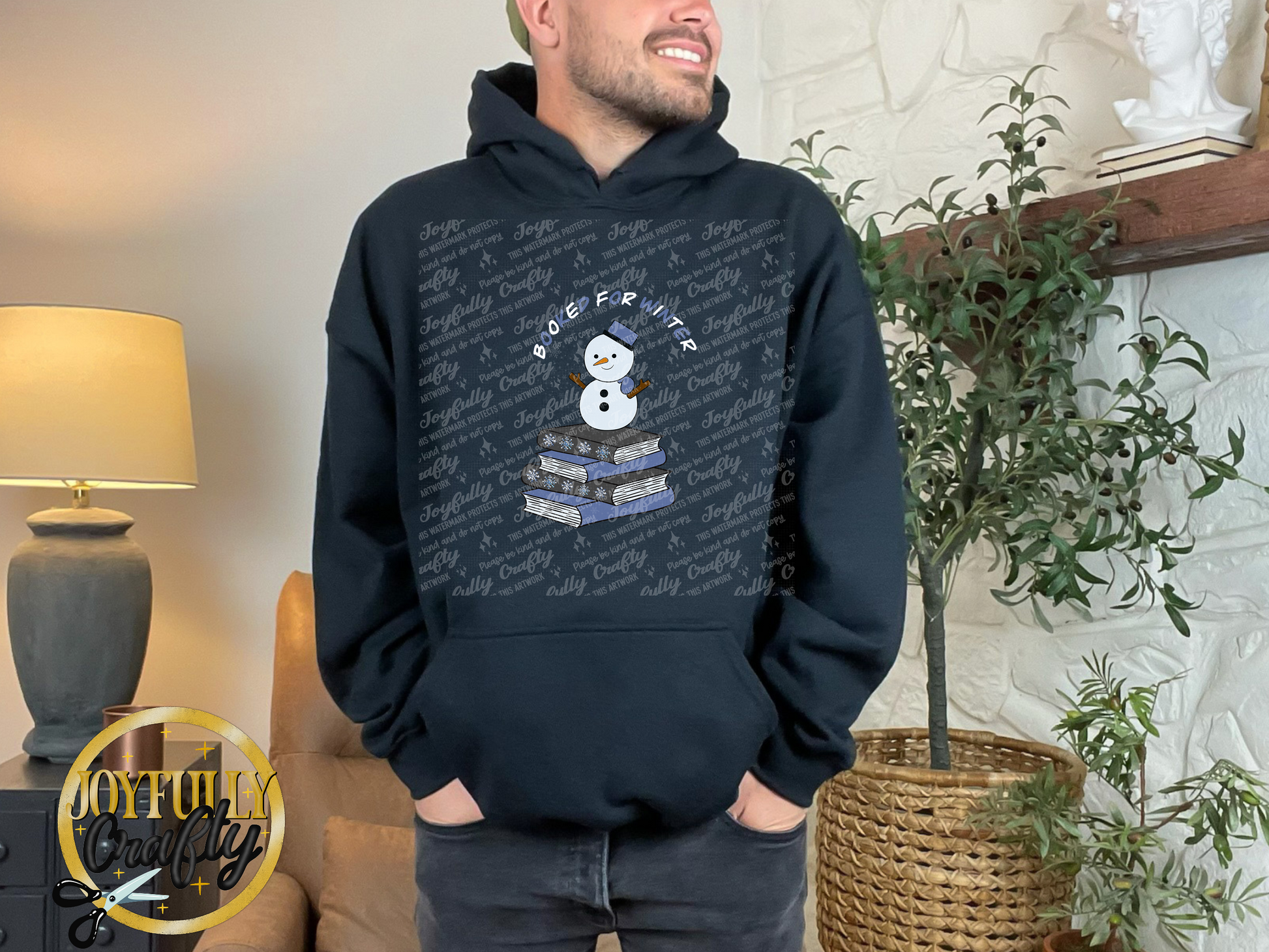 Booked For Winter Snowman Blue And White Letters Adult Hoodie