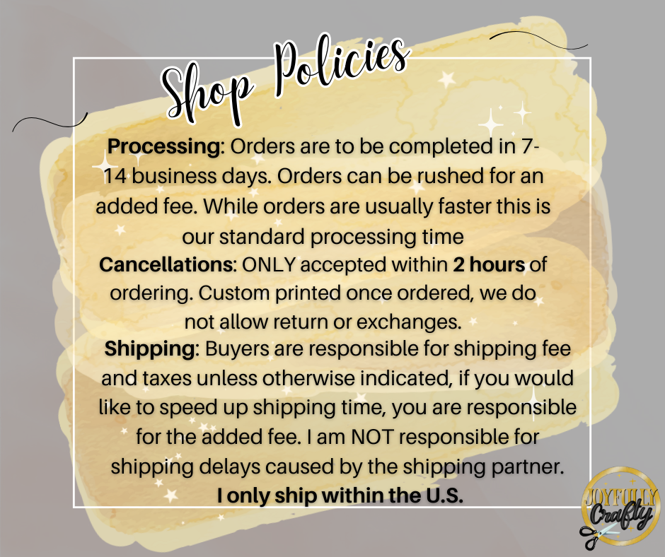 Please note if you are ordering on the SHOP app or social media you will have to email jojo@joyfullycrafty.com your color choice.