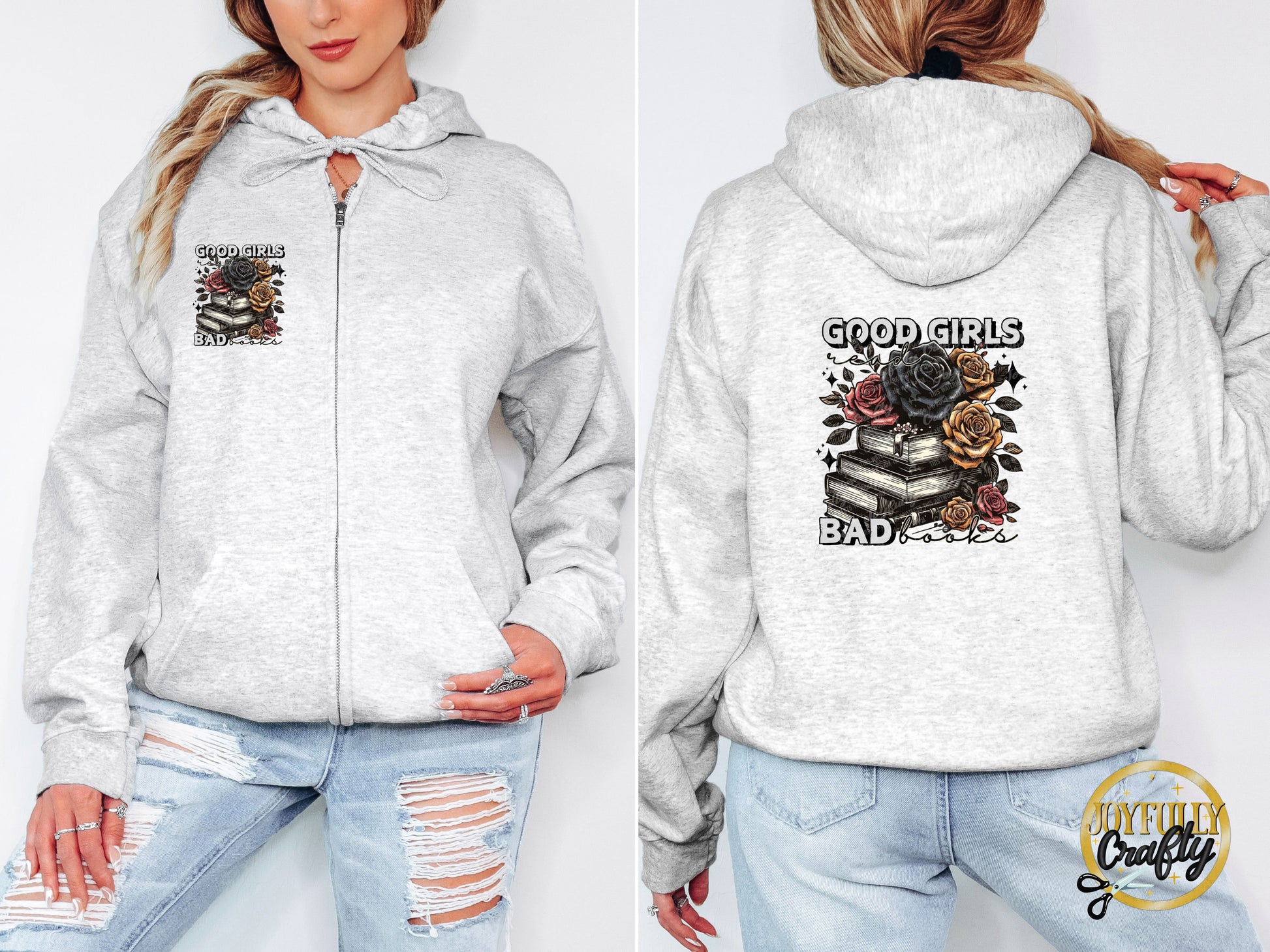 Good Girls Read Bad Books Adult Zip Up Hoodie Back Design