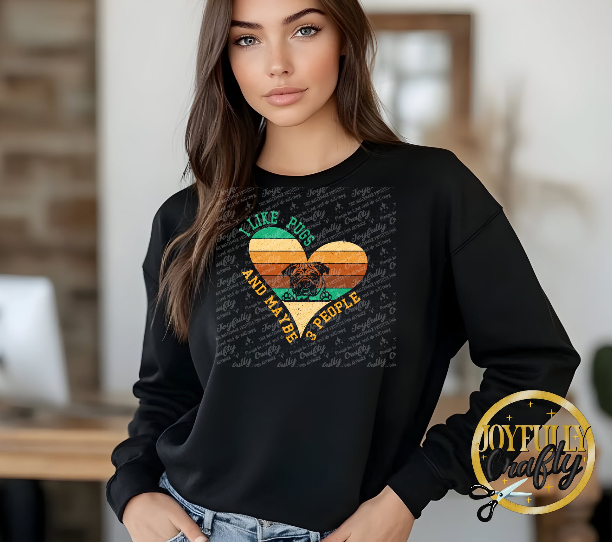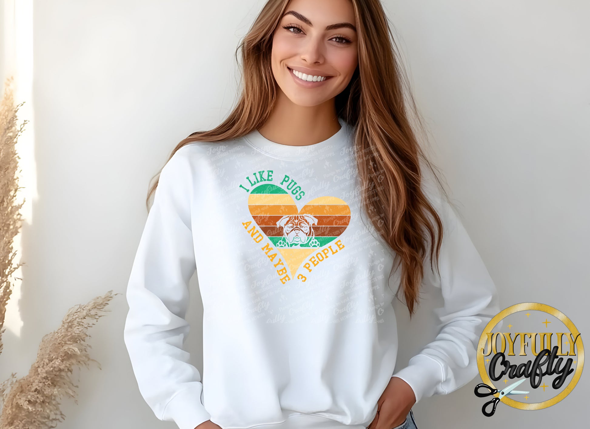 I Like Pugs And 3 People Distressed Heart Adult Long Sleeve