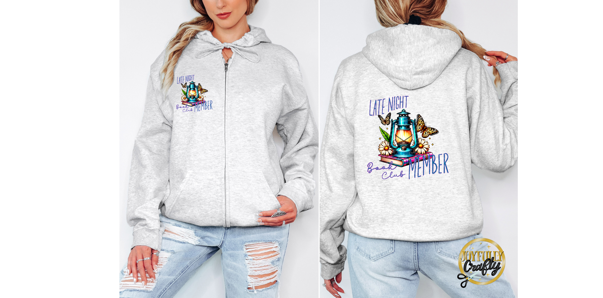 Enjoy your favorite hobbies design with your zip up hoodie! Please note if you are ordering on the SHOP app or social media you will have to email jojo@joyfullycrafty.com your color choice.