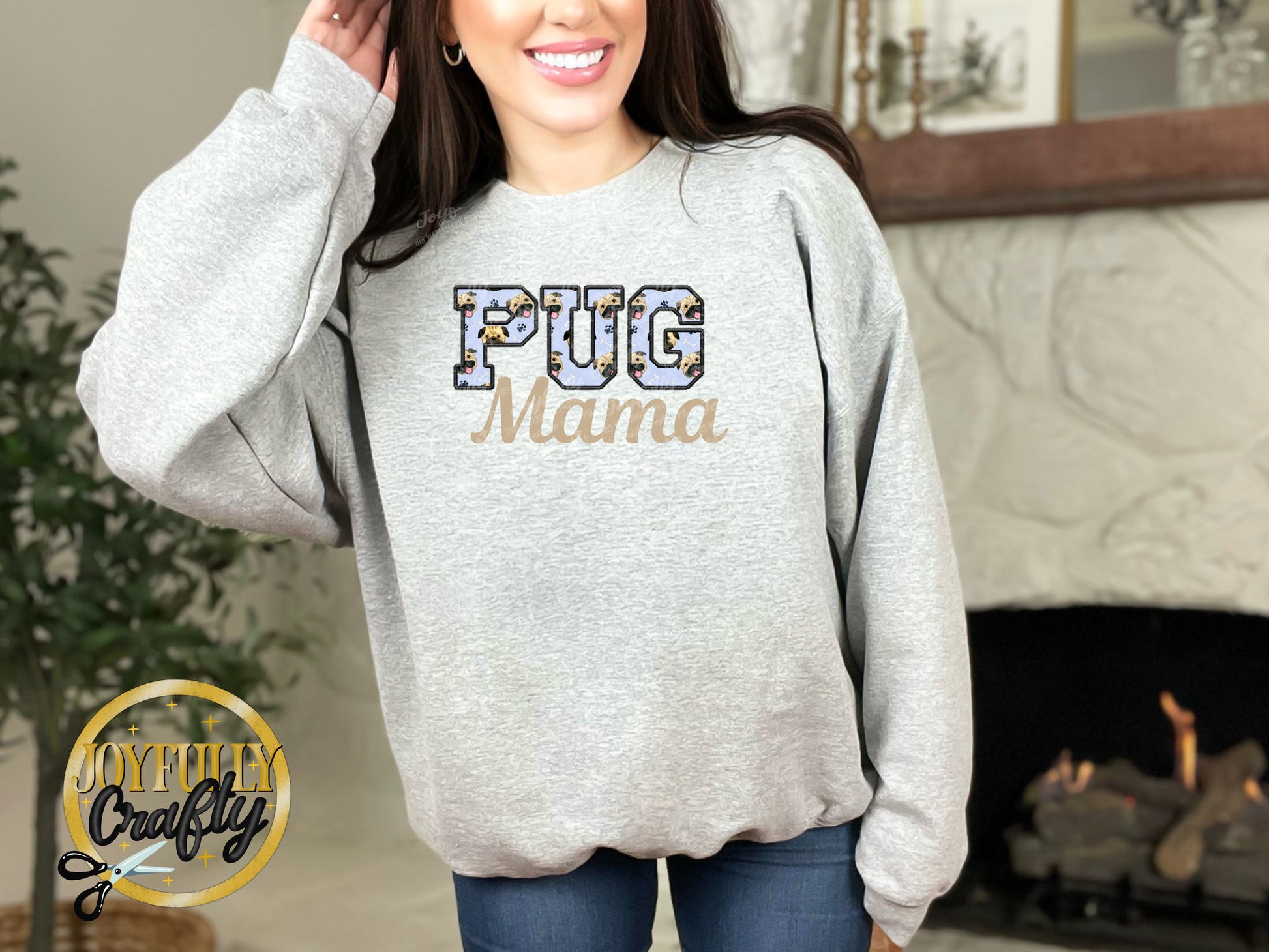 Pug Mama Faux Embroidered Adult Crewneck Sweater